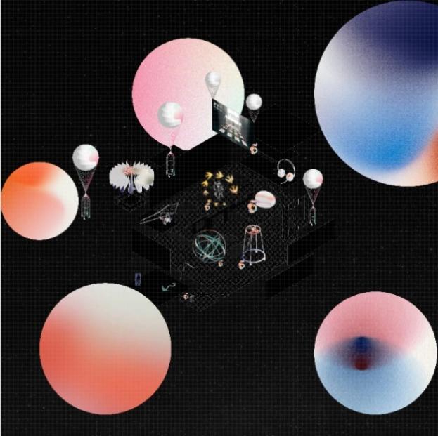 艺术展不是什么新鲜事,线上的艺术展怎么办出新意?两位策展人召集两院老师和学生,从叙事设定、艺术风格、展区空间和展具多方面讨论设计。最终,大会主办方跳出常规,由俞同舟选择了“超表面”风格,让观者站在向四方延展开的网格平面上,背景是星球深渊或海底波纹,带给他们“超现实”的深切体验。同时,创造性地将展区分为深海、陆地、意识、天空等景观,将展品根据主题陈列。