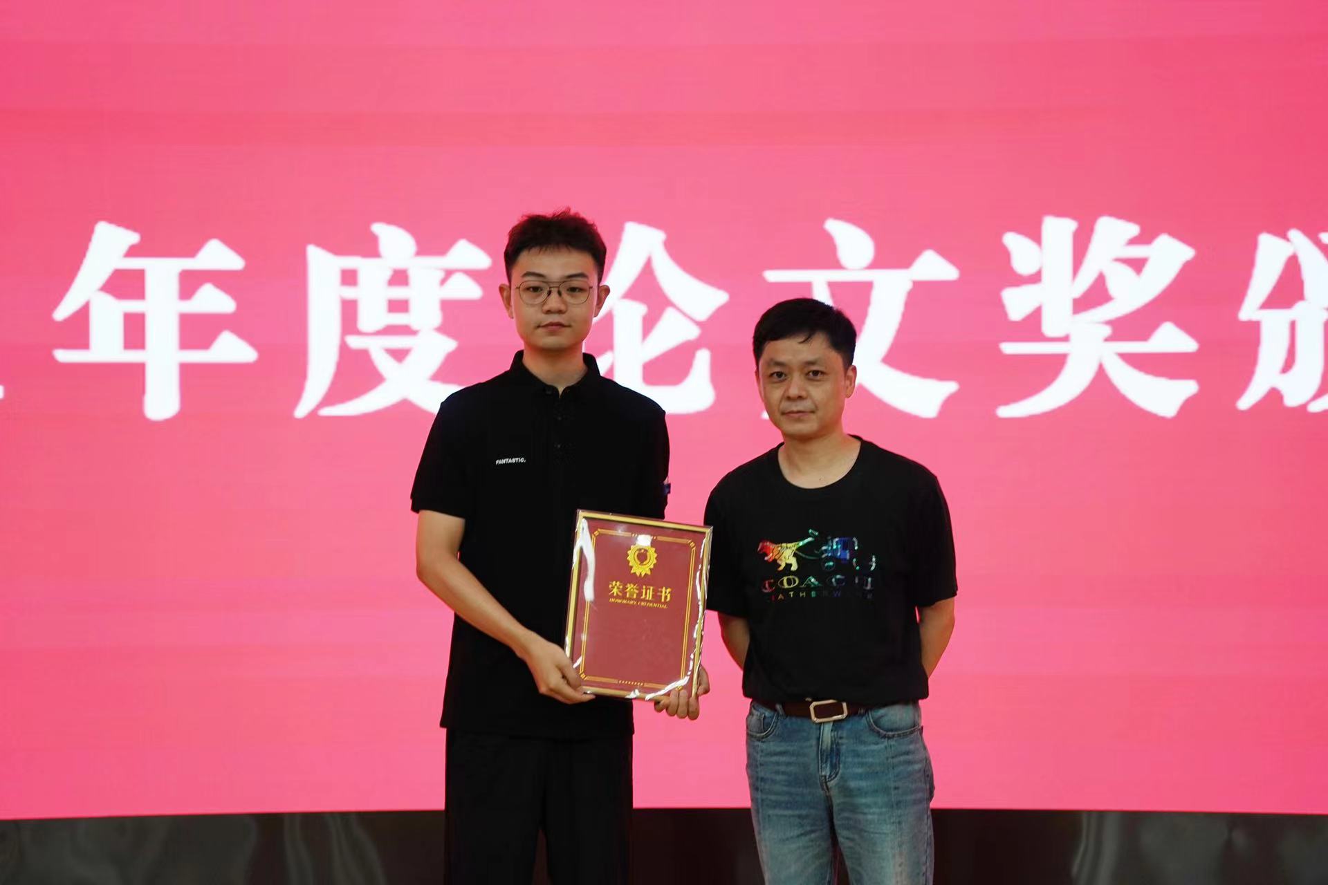 中国人民大学文学院教授杨庆祥为北京大学在读博士夏寅颁奖