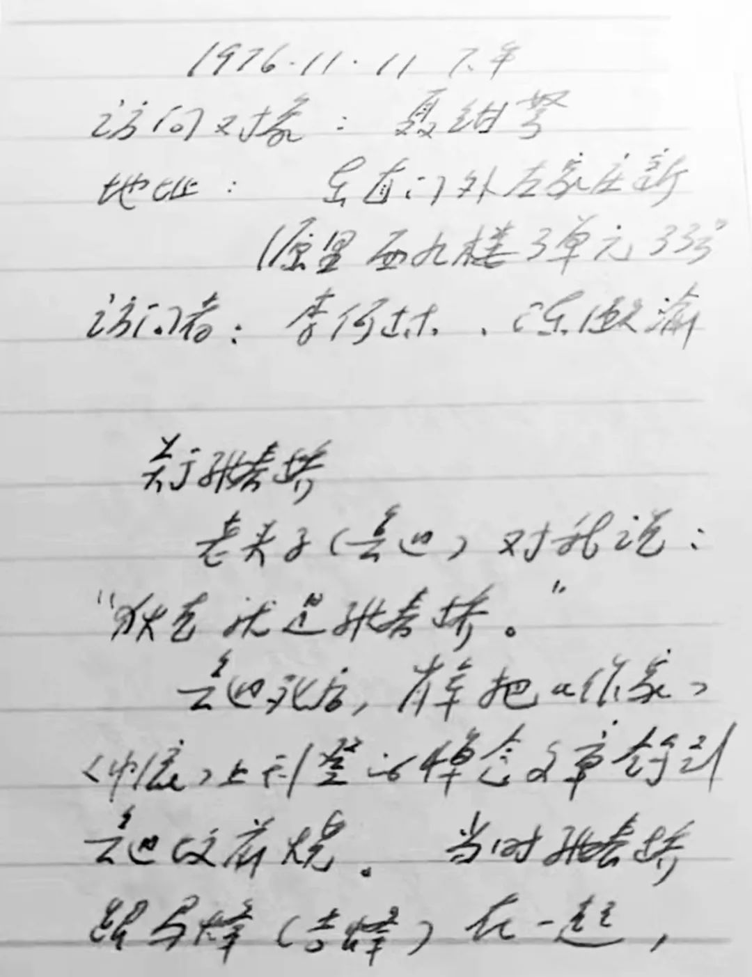 我对于46年之前的这次访谈之所以记忆如此清晰,完全不是靠的“好记性”,而是靠的“烂笔头”。我当场认真做了速记,回单位后马上进行了整理,这整理稿还保存在我的一本采访日记当中。1977年,我所在的鲁迅研究室准备编一部资料完整的《“两个口号”论争集》,而由于时间不够,第一次采访时聂老又语焉不详,便用通信方式请他再安排一次时间,那年2月26日,聂老复信说“何时枉顾均可”,所以4月初我就跟同事张小鼎再次登门了。