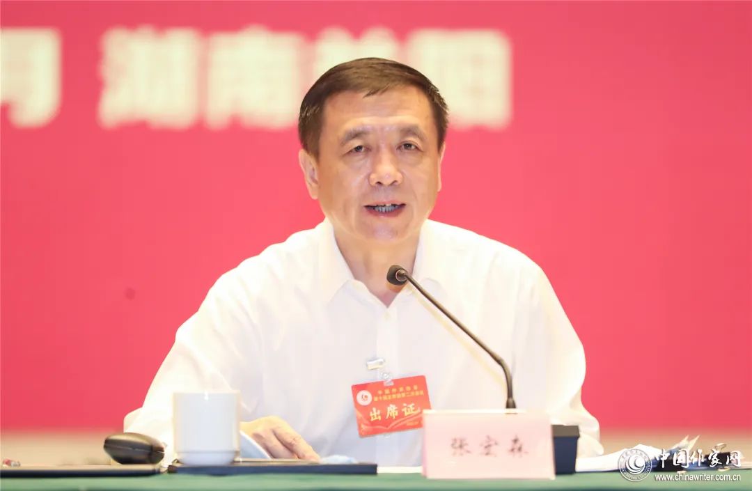 张宏森在报告中指出,要进一步深入学习习近平总书记重要讲话精神,深刻把握核心要义和实践要求。要深刻认识党领导文艺工作取得的辉煌成就和积累的宝贵经验,坚定社会主义文学道路;牢牢把握新时代文学的历史方位,以强烈历史主动精神书写中华民族新史诗;坚持人民立场,让文艺的百花园永远为人民绽放;坚持守正创新,开辟文学新境界,拓展文学新空间;紧紧围绕“做人的工作”,锻造新时代文学的中坚力量。