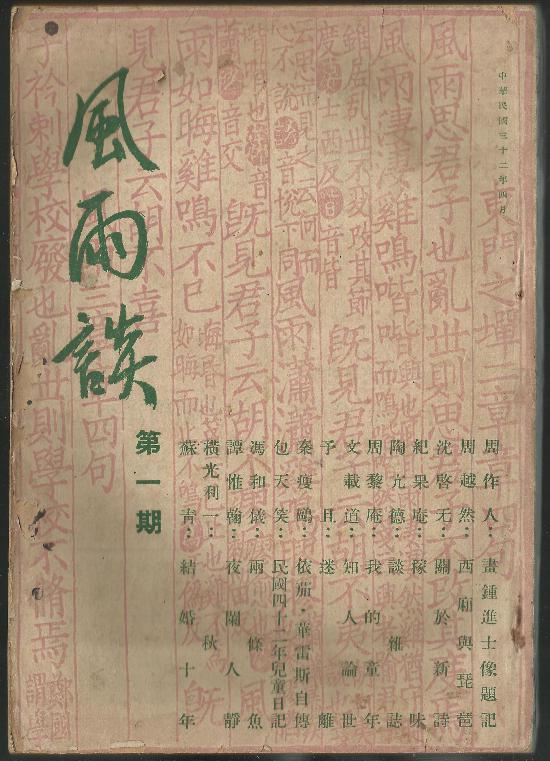 刊有陶亢德《谈杂志》的《风雨谈》杂志第一期