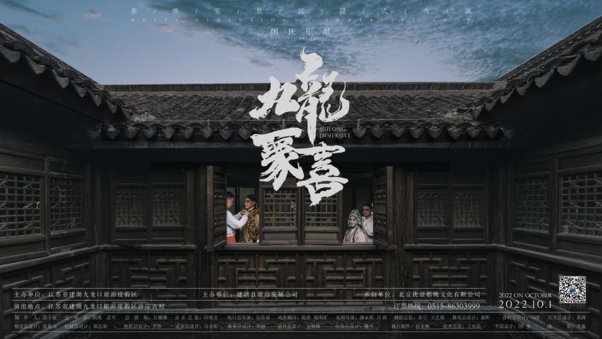 以国家级非物质文化遗产淮剧创意为主题的大型多维实景沉浸式秀演《九龙聚喜》,将于10月1日在江苏省盐城市建湖县九龙口旅游度假区与广大游客见面。这是一出别开生面的“戏中戏”,让一部曾经荣获多项国家级大奖的精品淮剧《小镇》走出象牙塔,带着新的活力以全新的视角,再现小镇。这是一次对“灵龙水乡”的秘境探索,九个场景九场戏,沉浸炫酷音画,体验非遗绝活。让人欣享水乡娴雅生活,品悟优秀传统文化。