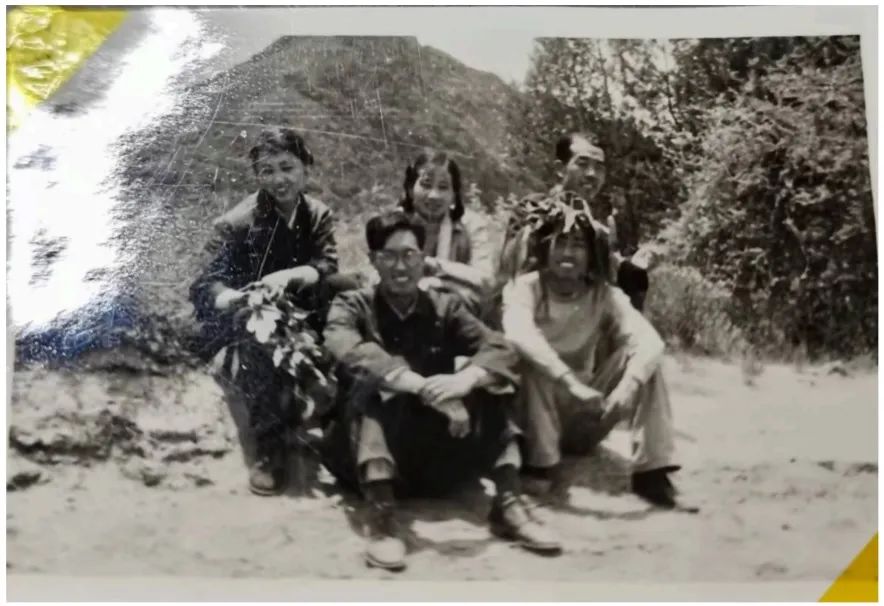 1960年西藏民间文学调查照片,前排从右至左:佟锦华(中央民族学院藏语系教师)、乔维岳(民院藏语系毕业生)。后排从左至右:孟庆芬(民院藏语系毕业生)、卓如、孙剑冰(中国科学院文学研究所民间文学组成员)。
