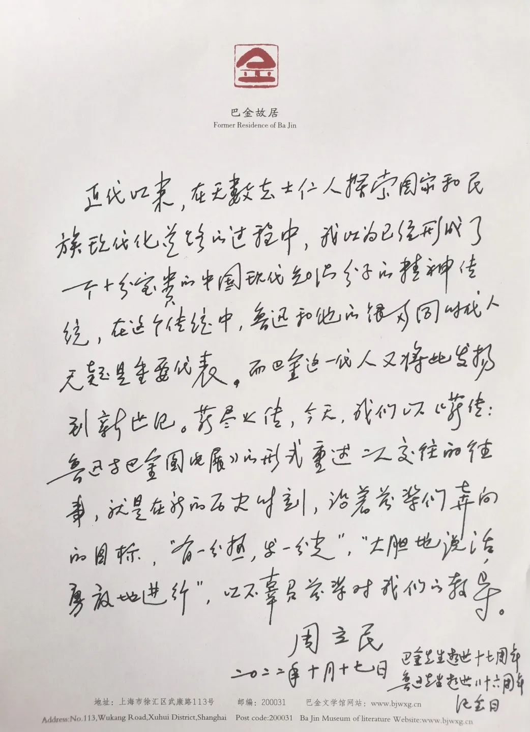 由中国现代文学馆、巴金故居主办的“薪传——鲁迅与巴金图片展”将于10月19日在中国现代文学馆开展。此次展览延续了2021年由巴金故居、徐汇区文化和旅游局策划主办的“薪传——鲁迅与巴金图片展”主题,并展出大量藏品,包含巴金手稿、巴金珍藏鲁迅文集、画集等,种类丰富,史料价值弥足珍贵。展览力求全方位展现鲁迅与巴金两位文学大师的友谊与人格魅力,再现波澜岁月中激荡的人文情怀。