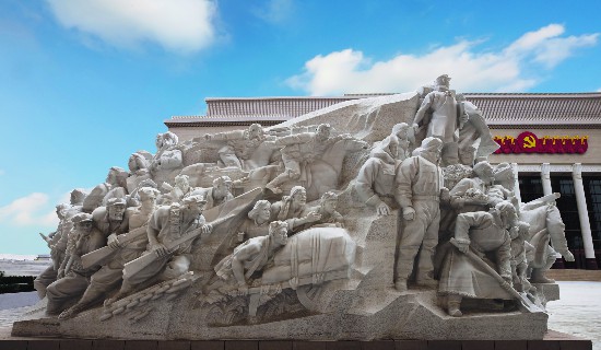 由中国美术学院师生团队历时三年雕刻的巨型雕塑作品《攻坚》矗立于中国共产党历史展览馆侧,寓意面对前进路上各种挑战,中国共产党始终带领人民奋斗进取、攻坚克难。