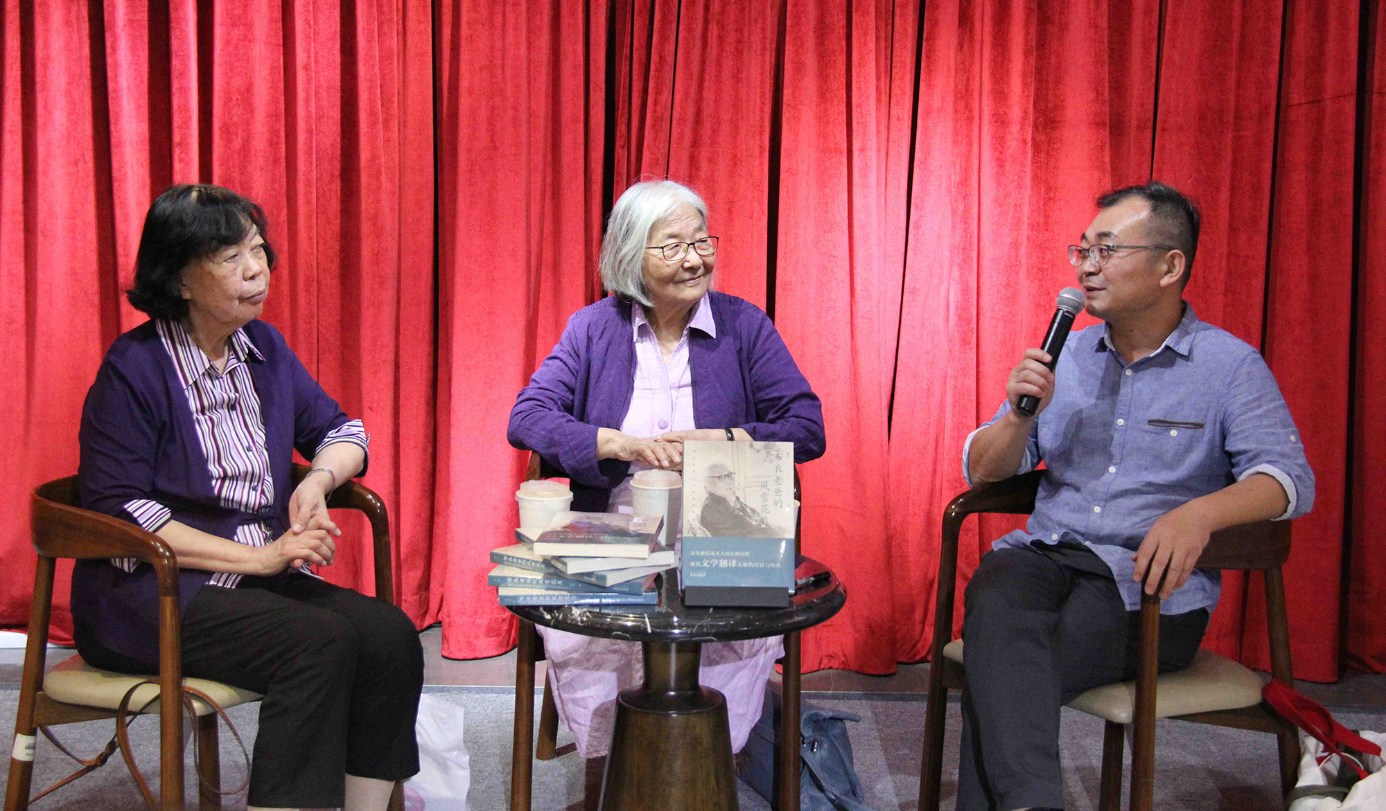 《布衣老爸的风雪花月:翻译家张谷若和他的世纪》新书首发式现场,从左至右:任吉生、张玲、高立志