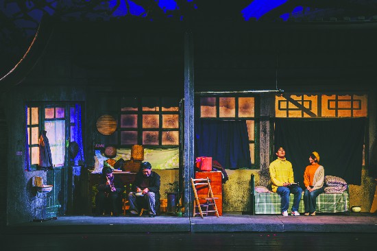 话剧《钟鼓楼》以匠人精神投身于舞台艺术创作,通过“模块化的组合”呈现出令人惊喜的艺术光彩,第一幕是四合院的实景全局,第二幕是一面墙打开后磊子家的箱式布景,第三幕是张局长家和智珠家相邻而居、各有悲欢的生活日常。当大幕徐徐拉开,剧中人物纷纷在婚礼上亮相,如同剥开了一只桔子,然后一瓣一瓣把“桔子”掰开,运用蒙太奇手法,同时把张局长家、澹台智珠家与婚礼主场景连接起来,探索出借助有限舞台时空开辟不同场景并塑造人物群像的新路。