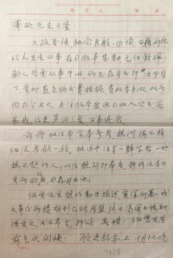 顾廷龙致杜泽逊函(1993年10月17日)