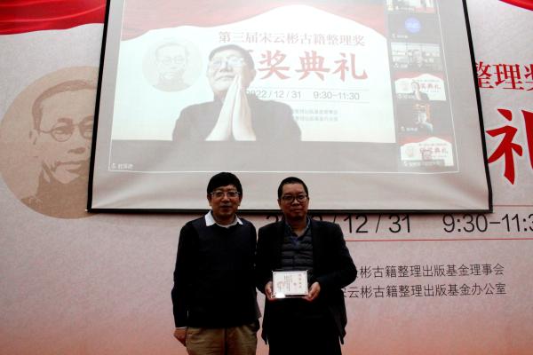 其实,人世间的一切事业,只要你真心喜欢做,那就确确实实是以苦为乐,以苦为甜。我要感谢这个时代,给了我从事古籍整理的机会,更要感谢我的师长和好友,给了我无数的支持帮助和鼓励,成果是重要的,但更宝贵的是人与人之间的情谊。感谢古籍规划办、古委会、上海古籍出版社、《四库存目丛书》编委会,感谢图书馆古籍界的朋友,也感谢培养我、提携我的山东大学的老师们领导们,最后特别感谢宋云彬古籍整理出版基金理事会,给了我这么大的荣誉。感谢宋云彬先生的家人,捐献设立宋云彬古籍整理出版基金,我要向宋云彬先生学习,为古籍整理事业做出更多的贡献。