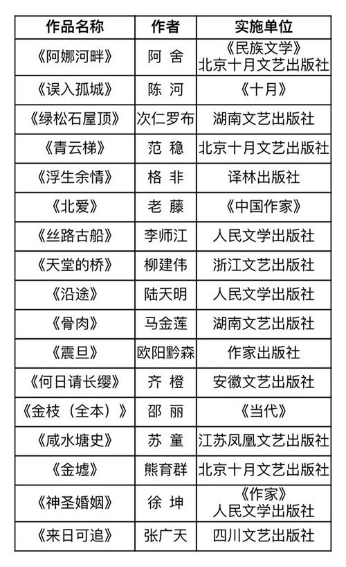 新时代文学攀登计划第二期支持项目名单