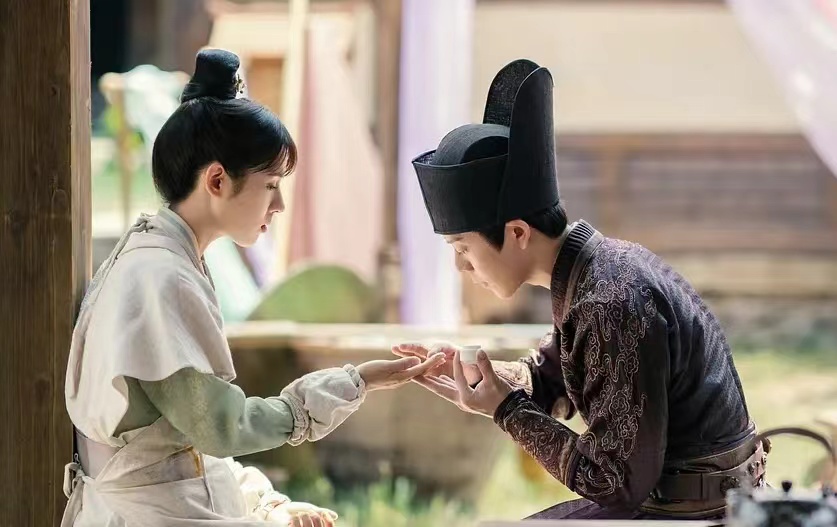 原著的主角情感线也是合理的,改编剧把情感契机处理得有所升华,同时把原著前半部表现出来的细微的人物特点和人性美放大了,而不止于样貌和氛围。一是放大了步音楼的善良、主见和清醒,突出她普通中的可贵;二是放大了肖铎的弱点和对烟火生活的向往,让肖铎也有普通人的温度,强调了他并未沉迷权势,纵有翻云覆雨的能力,也保有为国为民的赤子之心。比如步音楼为了自救改变殉葬的朝天女命运,假装食物中毒抠吐,藏利器划白绫,有力地表现了她的果敢聪明、清醒冷静和争取自己命运的抗争精神,而她给婢女留资产、救李美人,也表现了她内心的善良,这两者都是步音楼后来能走进肖铎内心的原因,而肖铎的赤诚也吸引了她。