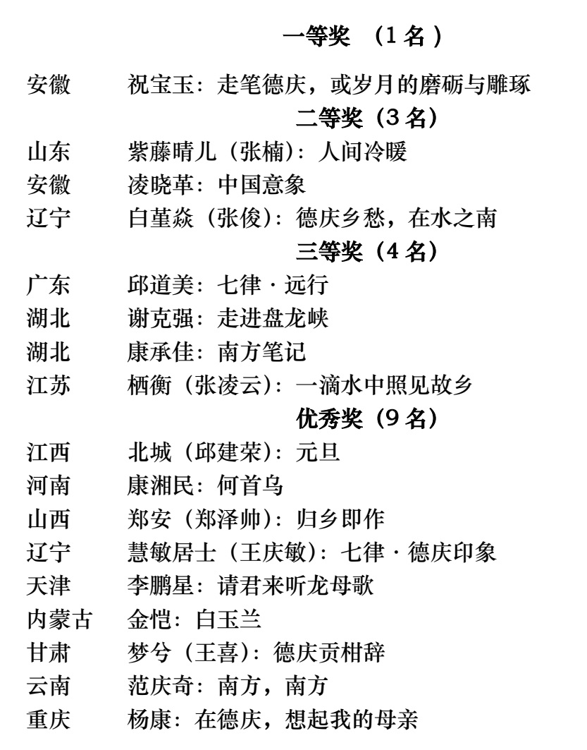 第二届南方诗歌节“龙母故乡?诗萃德庆”中外原创汉语主题诗歌获奖作品公告
