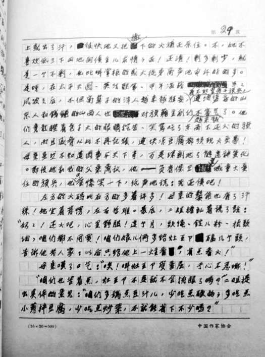 《正红旗下》手稿一页