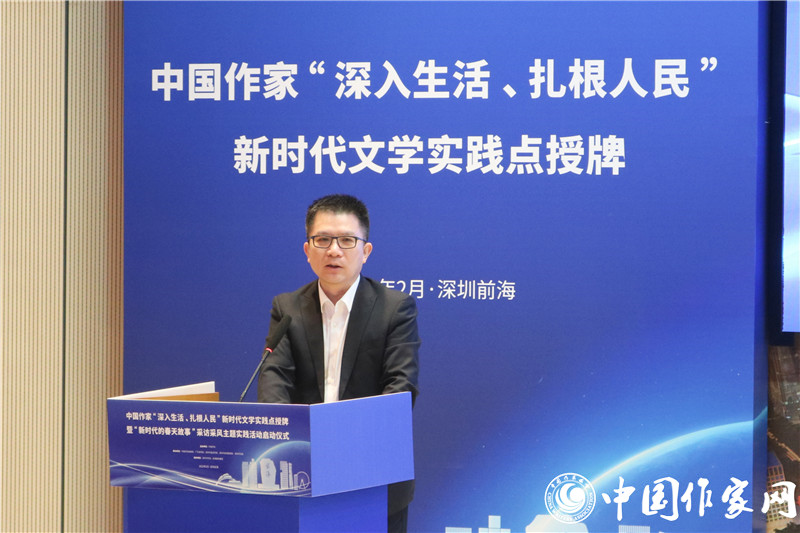 中共广东省委宣传部副部长刘启宇强调,“深入生活、扎根人民”是社会主义文艺永恒的价值导向和根本的实践路径。党的十八大以来,特别是近年来,广东省委、省政府大力推进文化强省建设“六大工程”,以实施文艺精品创作扶持计划为牵引,广泛开展深扎采风创作主题实践活动,引领全省广大作家聚焦新时代、新征程,不断推出紧扣时代脉搏、讴歌伟大人民、壮大精神力量的精品力作。深圳前海新时代文学实践点的启动,必将吸引神州上下的广大文艺工作者聚焦这方热土的伟大创造,从中提炼时代主题、体悟奋进力量,催生出源源不断的文学佳作,共同创作出新时代的春天故事。