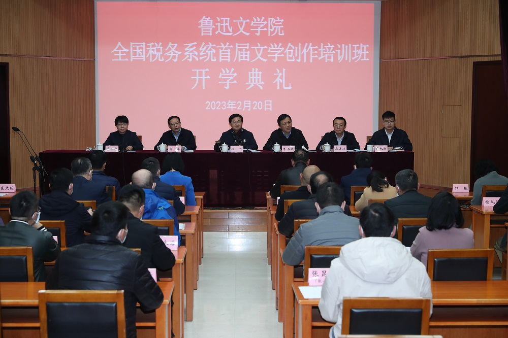 2月20日,鲁迅文学院全国税务系统首届文学创作培训班在京举行开学典礼。鲁迅文学院常务副院长徐可、中国税务出版社社长朱承斌、国家税务总局税收宣传中心副主任肖军、中国税务出版社副社长马连庆、鲁迅文学院副院长周长超出席开学典礼。开学典礼由鲁迅文学院副院长李东华主持。