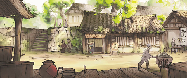 《小妖怪的夏天》独特的美术风格:国画风格但有丰富的颜色、光影和体积感。