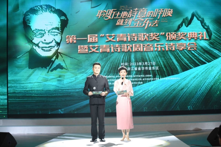 3月27日,以“聆听土地诗意的呼唤,就到金东去”为主题的第一届“艾青诗歌奖”颁奖典礼暨艾青诗歌周音乐诗享会在浙江省金华市金东人文博览中心举行。