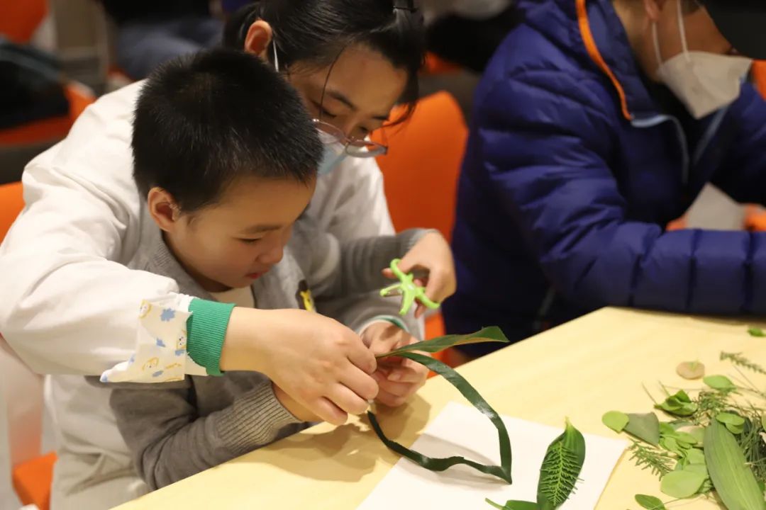 活动现场,有70组亲子家庭参与到叶子画的创作互动中,朱成梁老师为每一位小读者签名作画,合影留念。