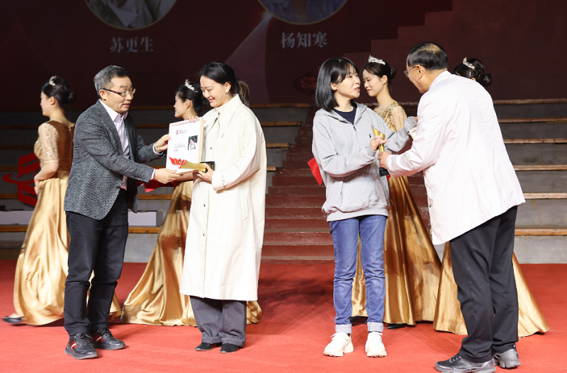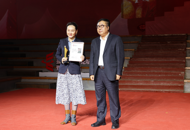 人民文学出版社执行董事(社长)臧永清为年度长篇五佳《金枝(全本)》作者邵丽颁奖