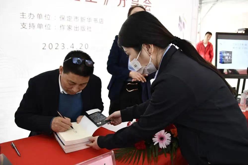 主会场启动仪式结束后,与会领导与嘉宾来到书市现场参加了关仁山《白洋淀上》分享会,聆听其创作经历,并签名留念。