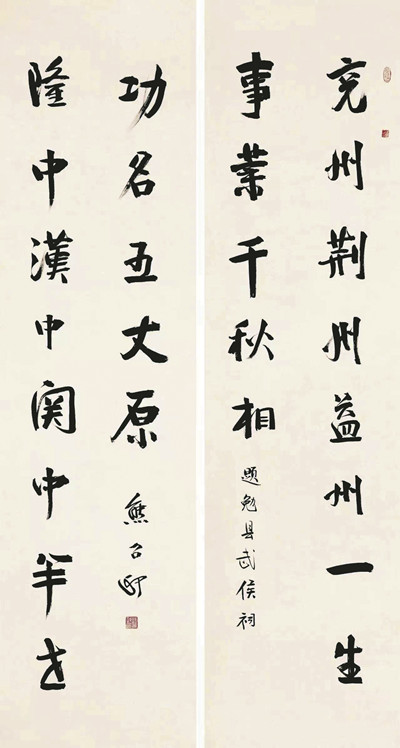 观看《翰墨中华》展览后,深感其特点之一是:诗书双畅,珠联璧合;文人书风,端雄清雅。其端雄的韵味往往以楷行的笔调、碑意的线条展示出器宇轩昂的正大气象,如赏故国神游篇章中《题勉县武侯祠》的龙门对“兖州荆州益州一生事业千秋相,隆中汉中关中半世功名五丈原”,联庄词工、字端气雄,这幅作品堪称佳作。熊召政先生在故国神游篇中有一副对联《题汉中石门陈列馆》中写道:“天下英雄归汉室,笔底风涛入石门”,可谓诗书合璧,精神飞动,有气韵酣畅,意精墨妙之豪趣。