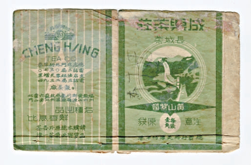 成兴茶庄管理层观察后,发现了消费者的痛点。第一,上等茉莉花茶动辄十多块大洋一斤,老百姓就是买半斤也觉得吃力。可是谁又不想喝好茶呢?哪怕是逢年过节偶尔享受一下也好啊。第二,传统茉莉花茶一般都是半斤一包,顾客买回去再自己倒进茶叶桶。可如果出门吃饭看戏,想喝顺口的好茶就很难了。您总不能揣着大茶叶桶满街溜达吧?顾客的痛点,就是商家的商机。于是,1940年成兴首创袋茶,将上等茉莉花茶分装成了小包装。笔者就收藏有一张成兴茶庄小袋茶的包装纸,品类是“黄山紫笋”,标价为“每袋一角”。成兴茶庄小袋茶包装严格,纸质坚固,印刷美观,有两层纸包装,外袋为模造纸,内装为有光纸,用浆糊封口,不论在分量质量方面,都很让用户放心。老百姓在接待宾朋时,花上五分或一角买上一袋,花不多的钱就能喝到一壶好茶,既方便又经济,故而一下子十分畅销。笔者收藏的这只成兴小袋茶右侧绘有万里长城八达岭一段,长城的“城”与成兴的“成”谐音,故而此茶也称长城茶。小袋茶左侧有商标,是长城上绘有数颗明星,“城星”与“成兴”谐音,又含有似长城之永固,如明星之高照的意义,可谓极尽巧思。