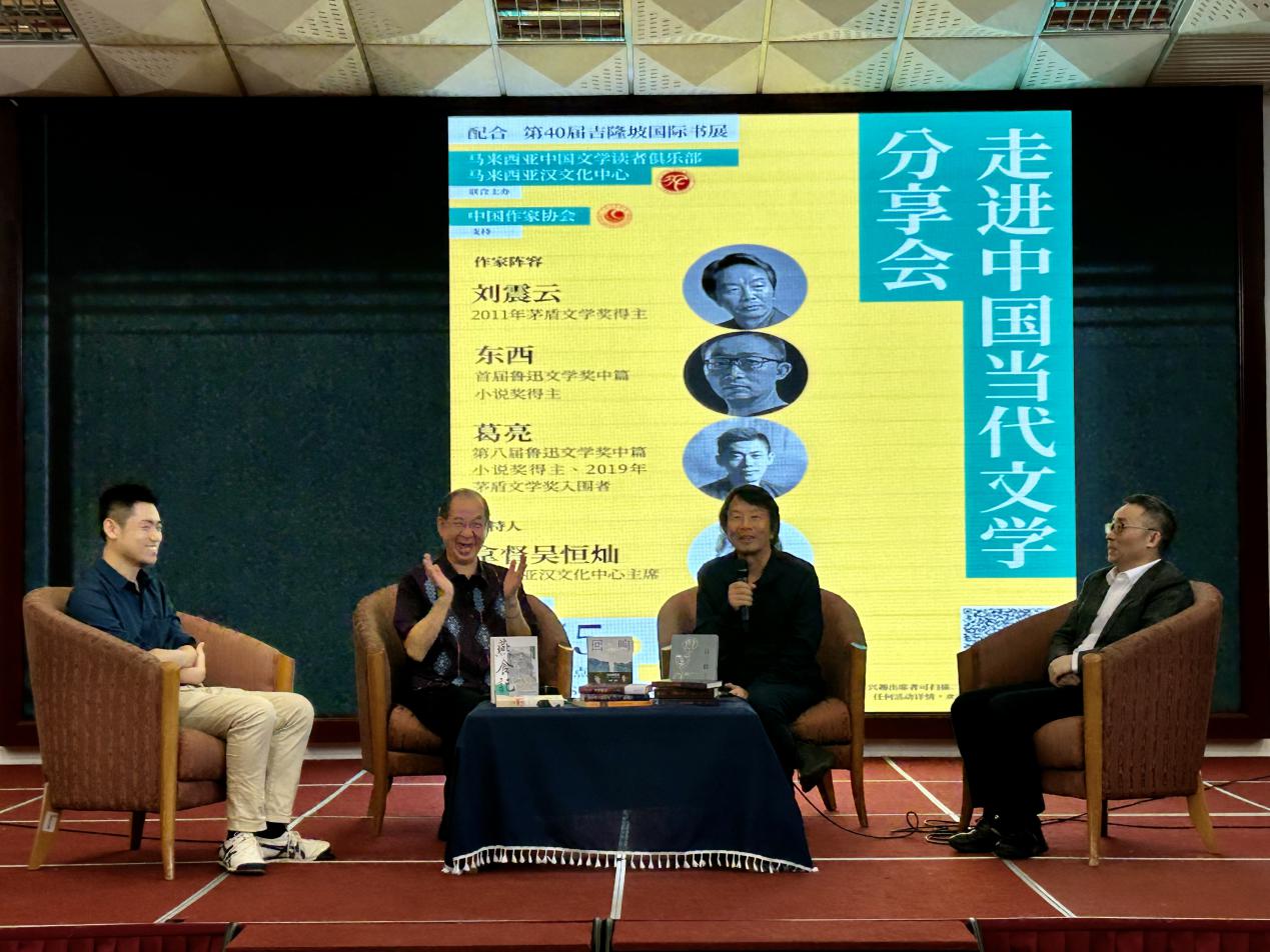 分享会由马来西亚读者俱乐部负责人、汉文化中心主席拿督吴恒灿主持,茅盾文学奖得主刘震云、鲁迅文学奖中篇小说奖得主东西和葛亮分别从不同角度侃侃而谈,把马来西亚读者带进了中国当代文学的精彩世界。