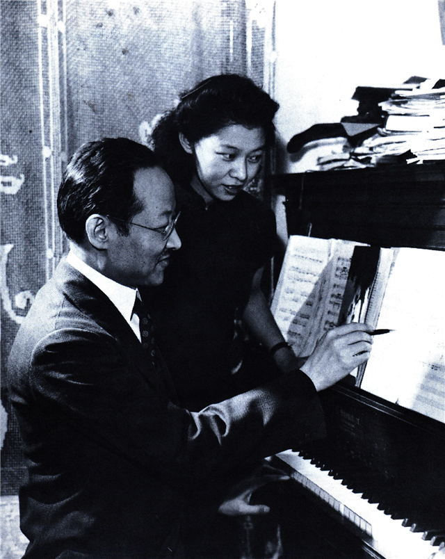 1944年,赵元任在哈佛寓所跟女儿赵如兰谈论音乐。