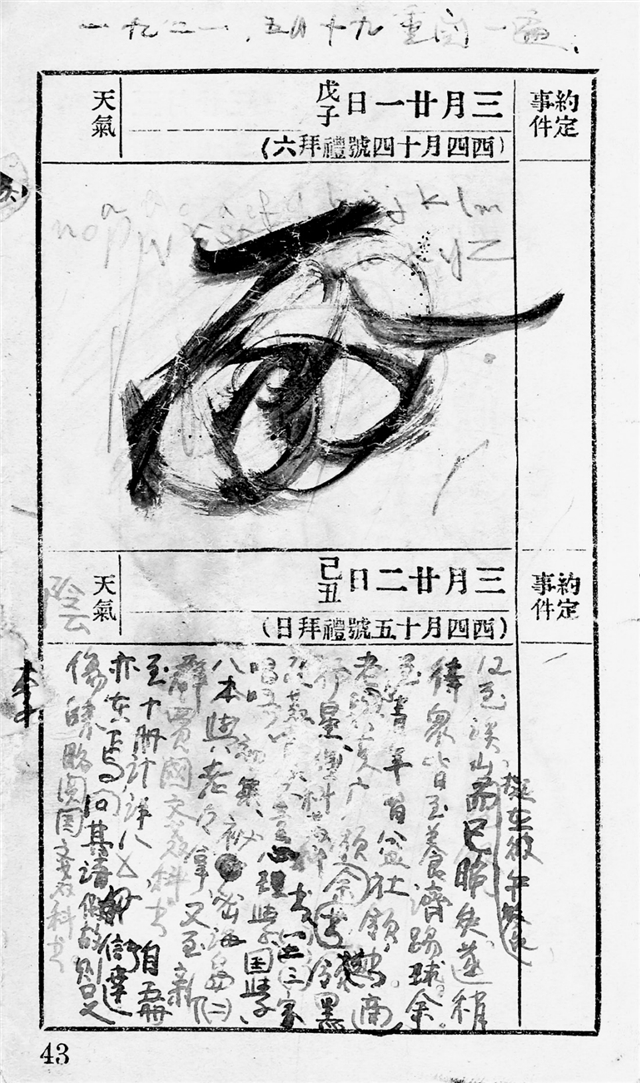 《赵元任日记》第12册内文,1927年6月2日晚,赵元任得到王国维的死讯,以及日记本中加的纸条