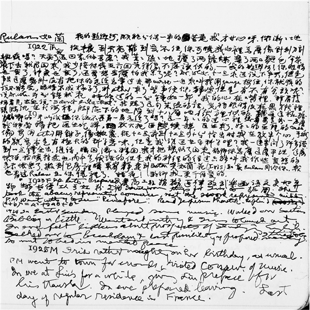 日记第10册内文,1922年赵元任的第一个女儿赵如兰诞生,4月20日他写了一篇长长的日记表达对妻子女儿的爱。