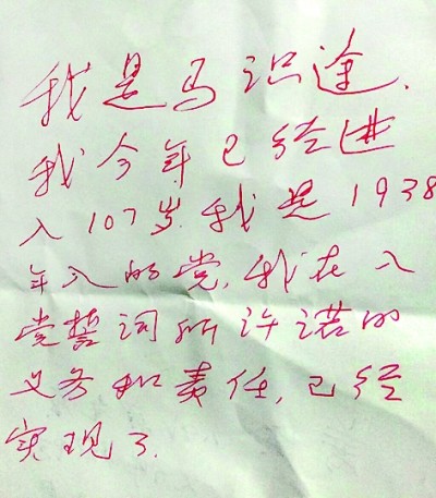 我是马识途,我今年已经进入107岁。我是1938年入的党,我在入党誓词所许诺的义务和责任,已经实现了。