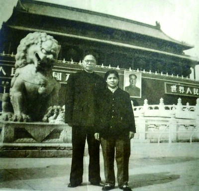 1960年,马识途与女儿吴翠兰在天安门广场合影。