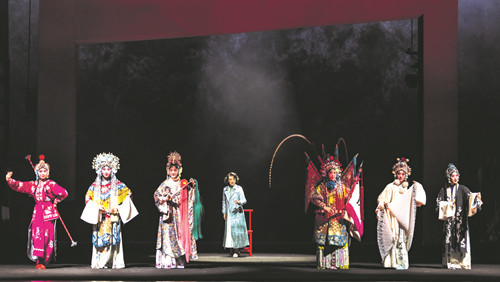 舞台表现方面,剧中主人公忆秦娥自如地出入叙事和抒情,同时将传统京剧人物外化为“戏魂”,巧妙地融入忆秦娥的内心视象。音乐设计突出民族器乐的独奏特点,笙、箫、笛、二胡、京胡、高胡、琵琶等发挥了“四两千斤”“以一当十”的能量。此外,声声板鼓贯穿全剧始终,既是胡三元的职业缩影,又是引领、伴随、激励忆秦娥成长的动力。舞美设计根据京剧虚拟性特征设计的悬挂式可转动框架,既标志着舞台台口,亦是时间流逝和时代变迁的外化,象征人生舞台亘古不变、周而复始。