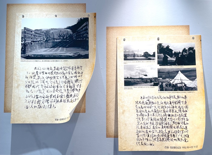 “烽烟滚滚唱英雄,四面青山侧耳听,侧耳听,晴天响雷敲金鼓……”作为一代人的回忆,电影《英雄儿女》的主题曲《英雄赞歌》回荡在第三单元“英雄儿女”中,这部电影改编自巴金的中篇小说《团圆》。中国现代文学馆为此展出了《团圆》手稿的复制件、巴金两次入朝写下的《赴朝日记》原件和《生活在英雄们的中间》的作品出版校样等。观众还可跟随《英雄儿女》主演王芳的领唱,加入志愿军将士们《英雄赞歌》的大合唱中,“亲身”感受抗美援朝战场英勇、壮烈的战斗历程和至爱、至痛的感人事件。