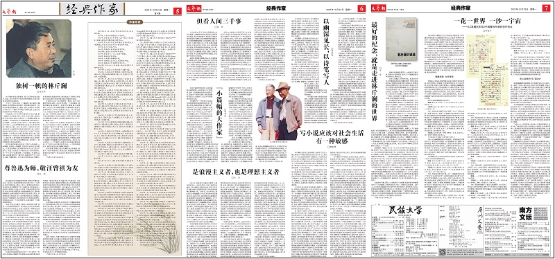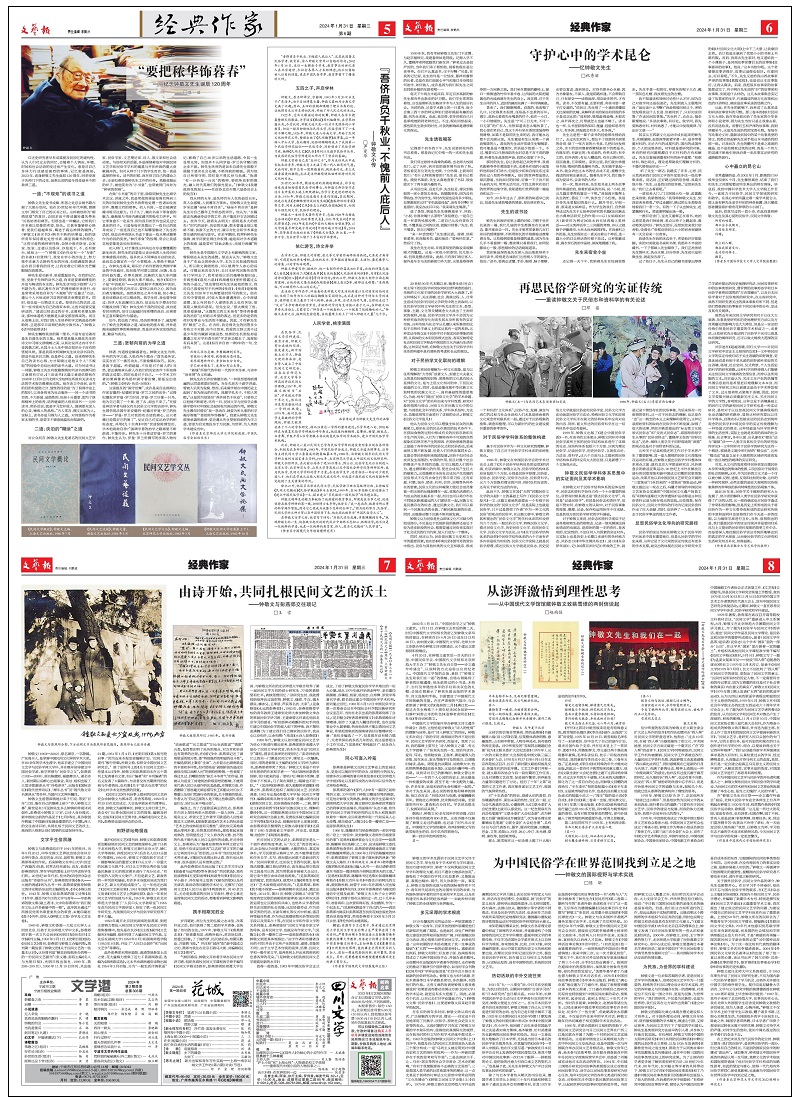 经典的魅力在于伟大作家们的创作实践、人生历程、理念哲思和学术思想,蕴含着丰赡而持久的阐释可能与意义空间。“指穷于为薪,火传也,不知其尽也。”为接力承续五四以来的新文学光荣传统,展示当代文学成就与经验,弘扬经典作家的当代价值,本报决定重启“经典作家专刊”,以每期四个版的容量,以“作家印象”“文学地理”“重读经典”“文史钩沉”“学术视野”“域外传真”等专栏,深入体察作家和作品背后的历史缘由,重新发现与考辨丰富复杂的史料细节,以富于学理和学术性的文字,继续向各界读者揭示中国现当代文学名家熠熠生辉的持久魅力,为当代文学创作提供更多营养,向全社会彰显更多属于文学的精神感召和审美力量,为建设文化强国发光发热。