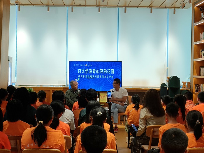 交流活动由诗人大卫主持。诗人刘剑、吕宾、杨拓夫等参加活动。组织此次活动的云南作家阮殿文表示,希望边疆来的这一批朴实的孩子,能够通过此次讲座,获得关于人生和文学的新认知,将来成长为优秀的文学写作者。