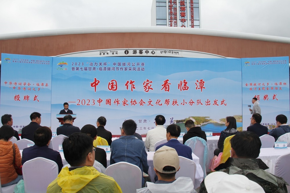 当日下午,临潭县“中华诗词之乡”授牌仪式以及“全国拔河之乡·临潭杯”拔河主题征文颁奖活动同时举行,对临潭诗词创作队伍不断壮大、诗词创作成果日益丰硕、诗词文化氛围持续浓厚的局面给予充分肯定。 “全国拔河之乡·临潭杯”拔河主题征文活动是电竞竞猜2023年在临潭县实施的文化帮扶项目之一,意在以“文学之笔”进一步挖掘“全国拔河之乡”临潭的万人拔河精神,赓续弘扬万人拔河文化,以优秀的文学作品为新时代临潭奋进者形象塑形,为新的历史起点上临潭经济社会发展注入精神能量。