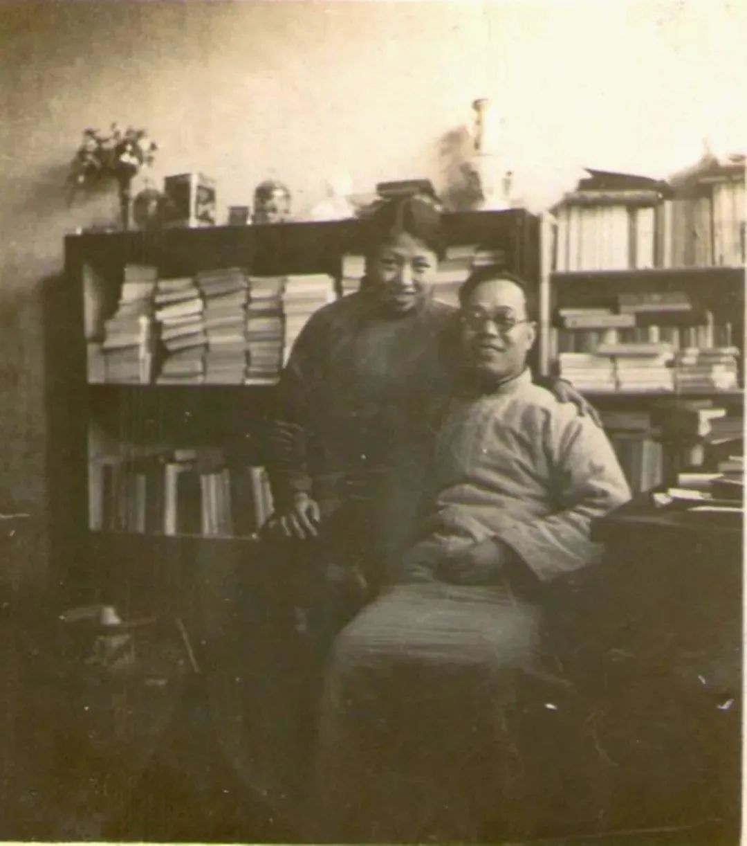 看着我爸这张书桌,就难以抑制我胸中一种特殊的感情,看到这张书桌就仿佛又看到我爸,他终生伏案写作就是用的这张书桌,从1933年10月和我妈成婚,这是我的外公送给他女婿的唯一一件礼物,我的曾经留学美国的外公那时在北京交通厅工作,协助詹天佑管理北京的铁路系统。岳父知道这个女婿就是以写作为生,送的嫁妆就是这张书桌。之后,这张书桌就陪伴了我父亲一辈子,从年轻到生命的最后一刻,还总有和我妈的合影: