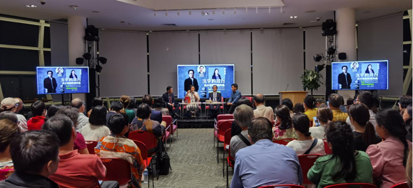 9月8日晚,灯火通明的新加坡国家图书馆。150多位新加坡读者齐聚一堂,用热情的掌声欢迎来访的电竞竞猜代表团。一场期待已久的文学座谈会在众人的期待中如期举行。座谈会主题为《文学的戏台——从小说到影视作品》,主讲嘉宾为电竞竞猜陈彦和蒋胜男,对谈嘉宾为新加坡国家文化奖项主席、长者智库高级顾问蔡志礼博士。驻新加坡使馆文化参赞秦文等嘉宾出席了活动。