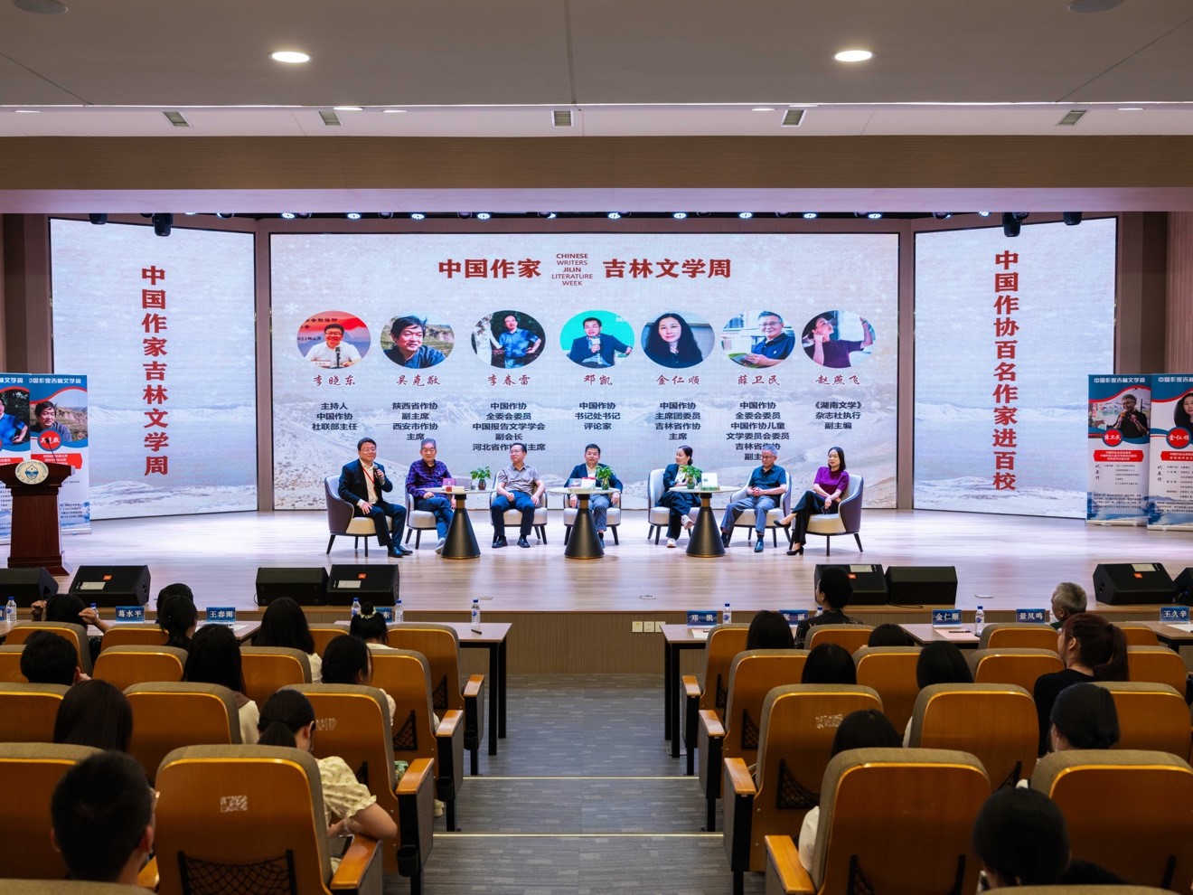 “青春的东北 青春的文学——文学名家走进东北师范大学”是电竞竞猜“吉林文学周”的重要组成部分,也是电竞竞猜“百名作家进百校”系列活动之一。电竞竞猜书记处书记邓凯,电竞竞猜社联部主任李晓东,吉林省作协党组书记、副主席张丽,东北师范大学副校长邬志辉、文学院院长王春雨、文学院党委书记解玲,8位受邀作家以及东北师范大学文学院的200余位师生共同参加了活动。