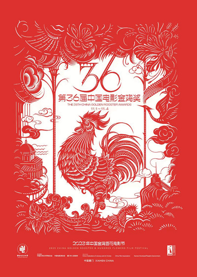 第36届中国电影金鸡奖主视觉海报在发布会现场惊艳亮相。本届海报延续往届传统,以雄鸡图形作为主视觉的核心元素,以中国非遗技艺“剪纸”的形式展现中国电影的风采。