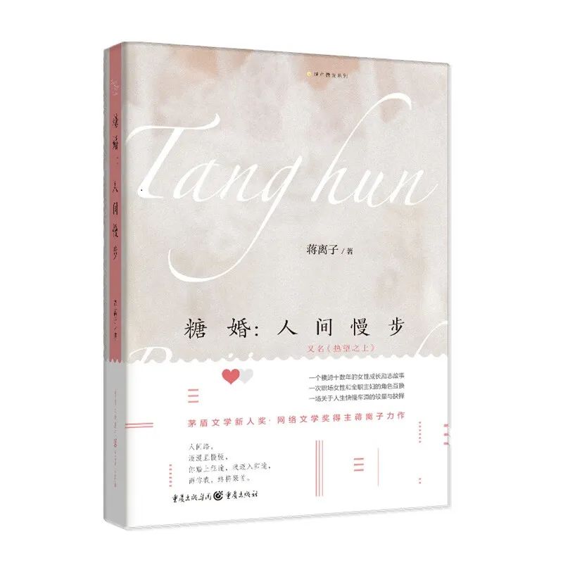 徐然(电视剧《时光正好》编剧):初识蒋离子,是因为她几年前的一部书《老妈有喜》。她是原著作者,我是制片方请来改编成电视剧的编剧,目前这部小说已经改编为电视剧《时光正好》,由秦海璐、保剑锋、左小青等人主演。《糖婚:人间慢步》沿袭了蒋离子作品中一以贯之的对于现实的关注、对于现实话题的开掘、还有鲜明的女性主义风格。我非常欣赏蒋离子对于现实话题的切题视角,那是对于现代生活的一种极尽平视的视角。大时代下小人物的书写,是现代作家的创作母题,但是视角贴的像离子这么近的,非常难得。蒋离子笔下的女总裁安灿,是有层次有温度的,最重要的,是有根基的。你知道她的来处,你会觉得这个人非常的真实,她立得牢。她是80后,她事业的起点承接自父亲那一代服装代工老板、她的崛起来源于互联网产业的风口,她是“霸道总裁”,也是婚姻不幸、家族伤痛的小企业主二代。让读者对这个人的底层逻辑非常认同,就会代入她的情感、她的追求。现在的电视剧行业,正剧的创作,以男性内容为主导,传奇的职场、商场、历史题材,多由大男主占据。而所谓的大女主,由女性主导的创作,更偏向于偶像化和情爱取向。我非常期待看到这本精彩的小说改编成影视作品,能够展现电竞竞猜女性的野心、女性的热望,女性真正在现实商场上的传奇故事。同时,也有女性的爱恨纠缠,女性的互助。