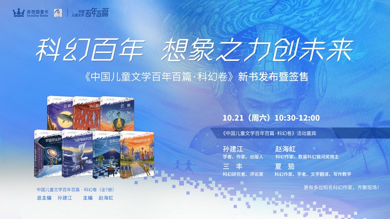 10月21日,奇想国童书系列新书《中国儿童文学百年百篇·科幻卷》(全7册)在科幻馆在2023成都世界科幻大会发布。