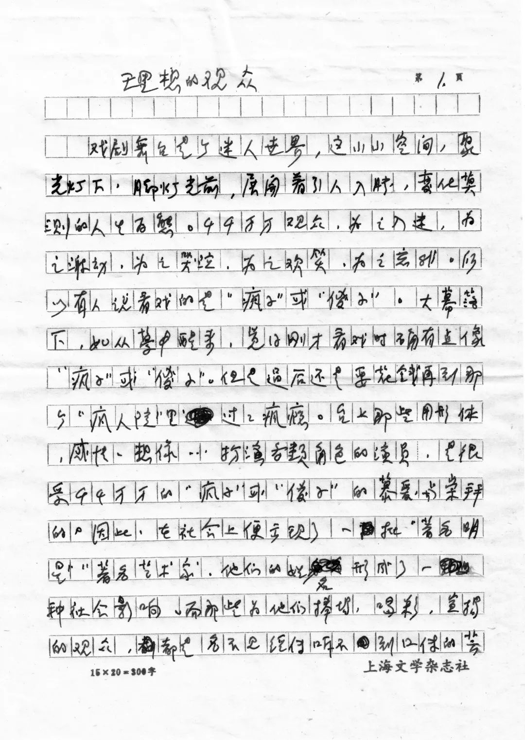 王啸平《理想的观众》手稿之一
