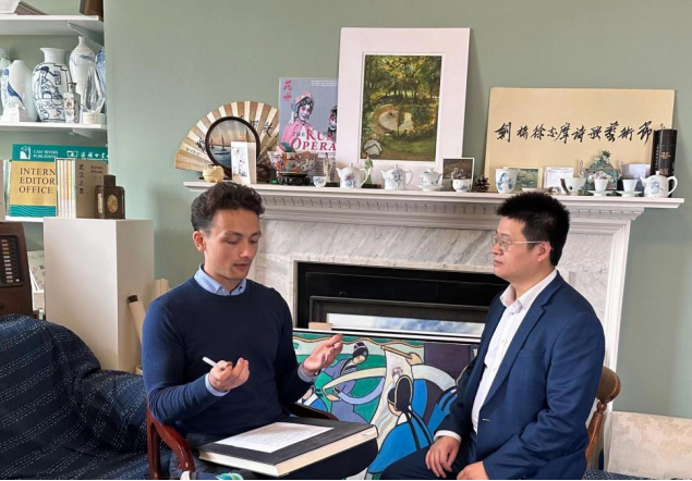 在英国第二站,横扫天涯来到英国剑桥大学,参观了三一学院、国王学院等知名学院,参访了华兹华斯、拜伦、徐志摩等文学名家留下的足迹,到康河出版社(Cam Rivers Publishing)与读者见面,并与毕业于剑桥大学人类、社会和政治科学专业的出版社资深编辑拉文特·克洛斯先生进行文学对话,分享了他的创作历程和近期在英国等欧洲国家开展国际文学交流的体会,并就网络文学在国内外的发展,以及未来的走向进行了深度探讨。