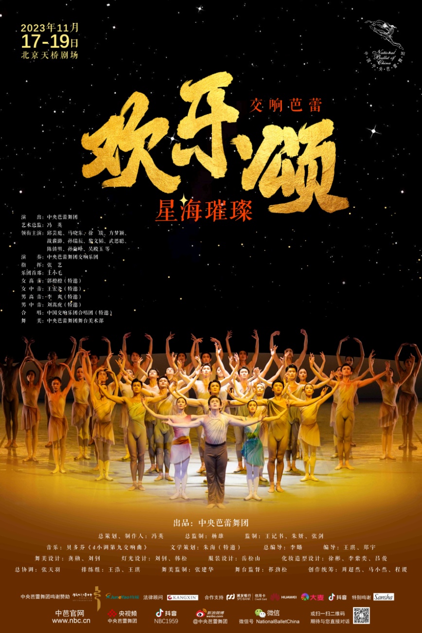 2023年11月17日至19日,中央芭蕾舞团将在北京天桥剧场带来交响芭蕾《欢乐颂·星海璀璨》的首演。在明年即将迎来音乐家贝多芬《d小调第九交响曲》首演200周年之际,该作品将用交响芭蕾这一独特的舞蹈语汇与艺术形式,首次以“舞团+乐团+合唱团”共220人的庞大阵容,将这部恢宏巨作倾情呈现。同时,此次演出将为由中芭主办的“中国国际芭蕾演出季”10周年盛大启幕,由此也传递出本届演出季的重要主旨:构建人类命运共同体,一道共创和平、安宁、繁荣、开放、美丽的世界,一起奔向命运共同的璀璨星海。