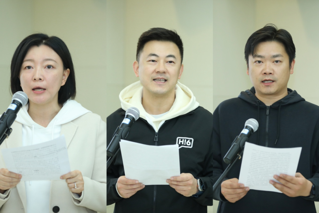 许可(中)、周一凡(左)、胡杨梓(右)三位学员代表发言