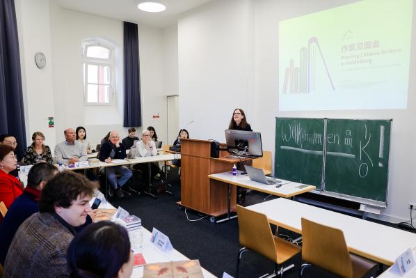 海德堡大学是德国最古老的大学,建于1386年,是德国浪漫主义与人文主义的象征,也是欧洲最重要的学术中心之一。在海德堡大学孔子学院外方院长丁蕾(Petra Thiel)博士主持下,范稳、徐坤和弋舟分别介绍了自己的创作经历,以及各自作品中关于历史、文化的想象和探索。海德堡大学亚洲与跨文化研究中心中国研究所所长芭芭拉·米特勒教授、亚洲与跨文化研究中心"创造世界"项目研究员兼博士后萨拉·兰达博士、南亚研究所马丁·及瑟曼博士等参与文学对话,并介绍了他们关于中国文学、亚洲文化、中德文化交流等相关领域的思考与设想。海德堡大学的青年学生踊跃向3位电竞竞猜提问交流。活动现场,汉学家吕海粟等还当场表示了想翻译弋舟短篇小说《出警》等作品的意愿。电竞竞猜们还向海德堡大学图书馆赠送了签名图书,受到图书馆馆长的热烈欢迎。