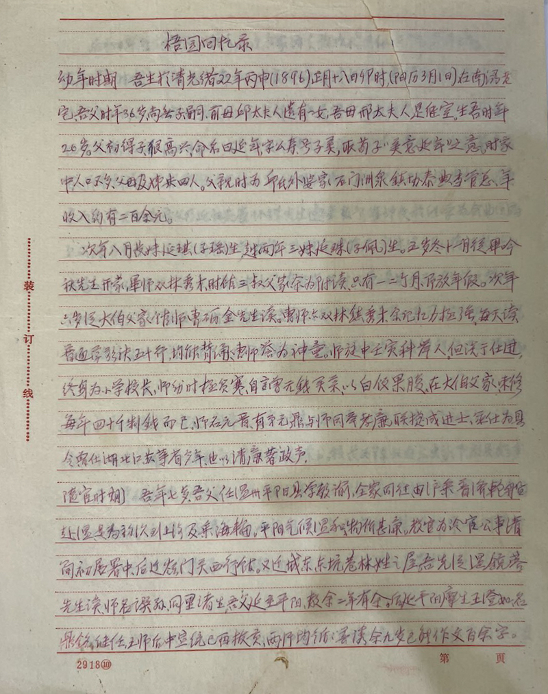 《梧园回忆录》原稿