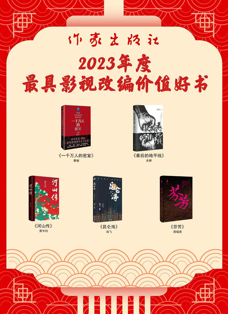 影视界专家评委还特别对有改编潜力的题材和作品展开探讨,最终共同评选出5部作家出版社2023年度最具影视改编价值图书:《一千万人的密室》《最后的地平线》《昆仑海》《芬芳》《河山传》。